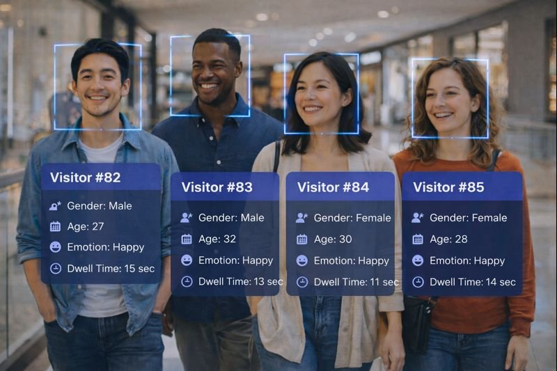 AI-powered computer vision analytics for retail, malls, and digital media networks